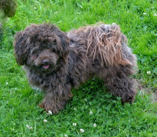 Die Farbe ist schokobraun mit weißen Abzeichen.